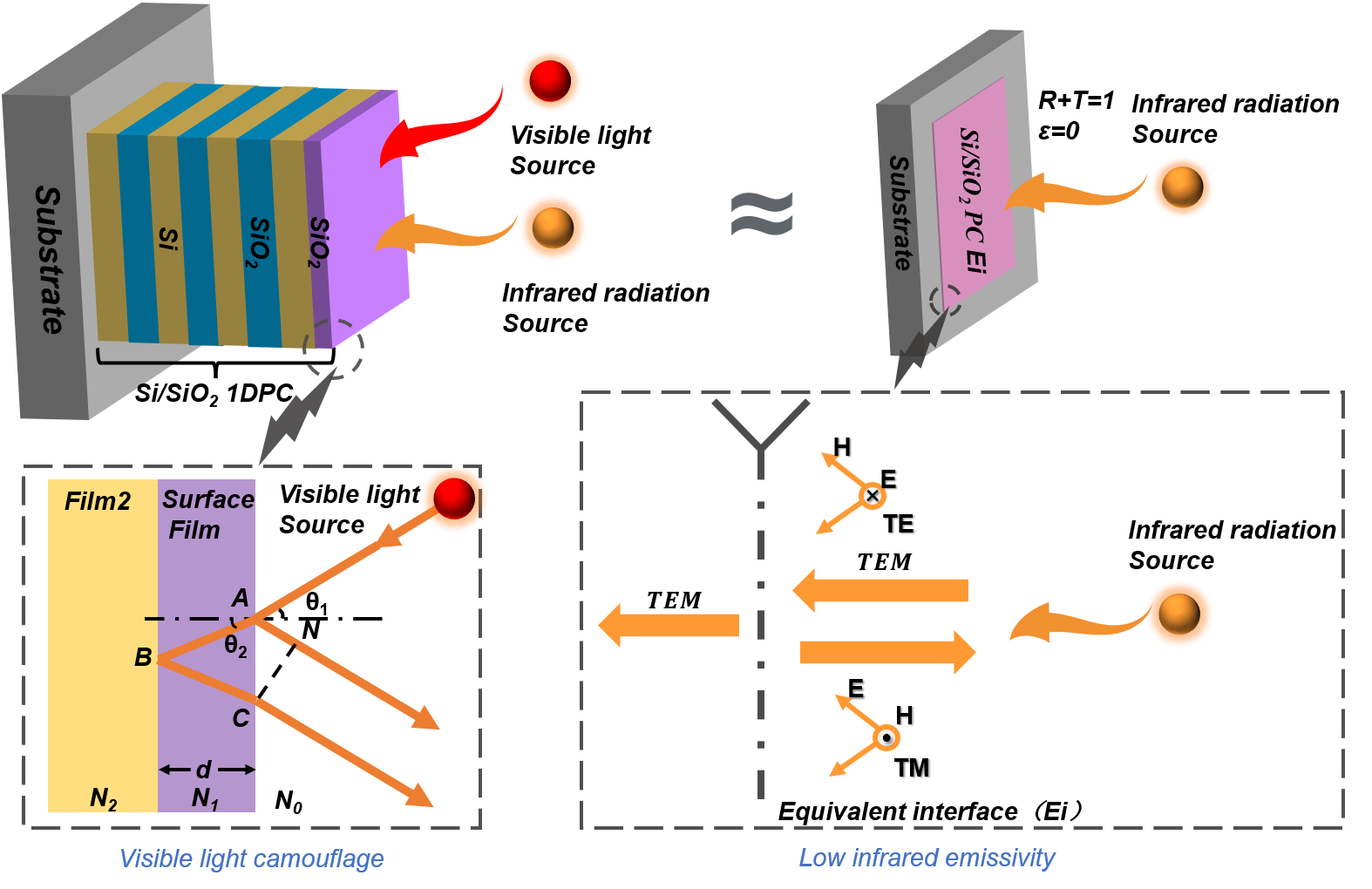 Fig. 1 The illustration of the [Si/SiO2]N photonic crystal (PC) for visible light camouflage and low infrared emissivity.